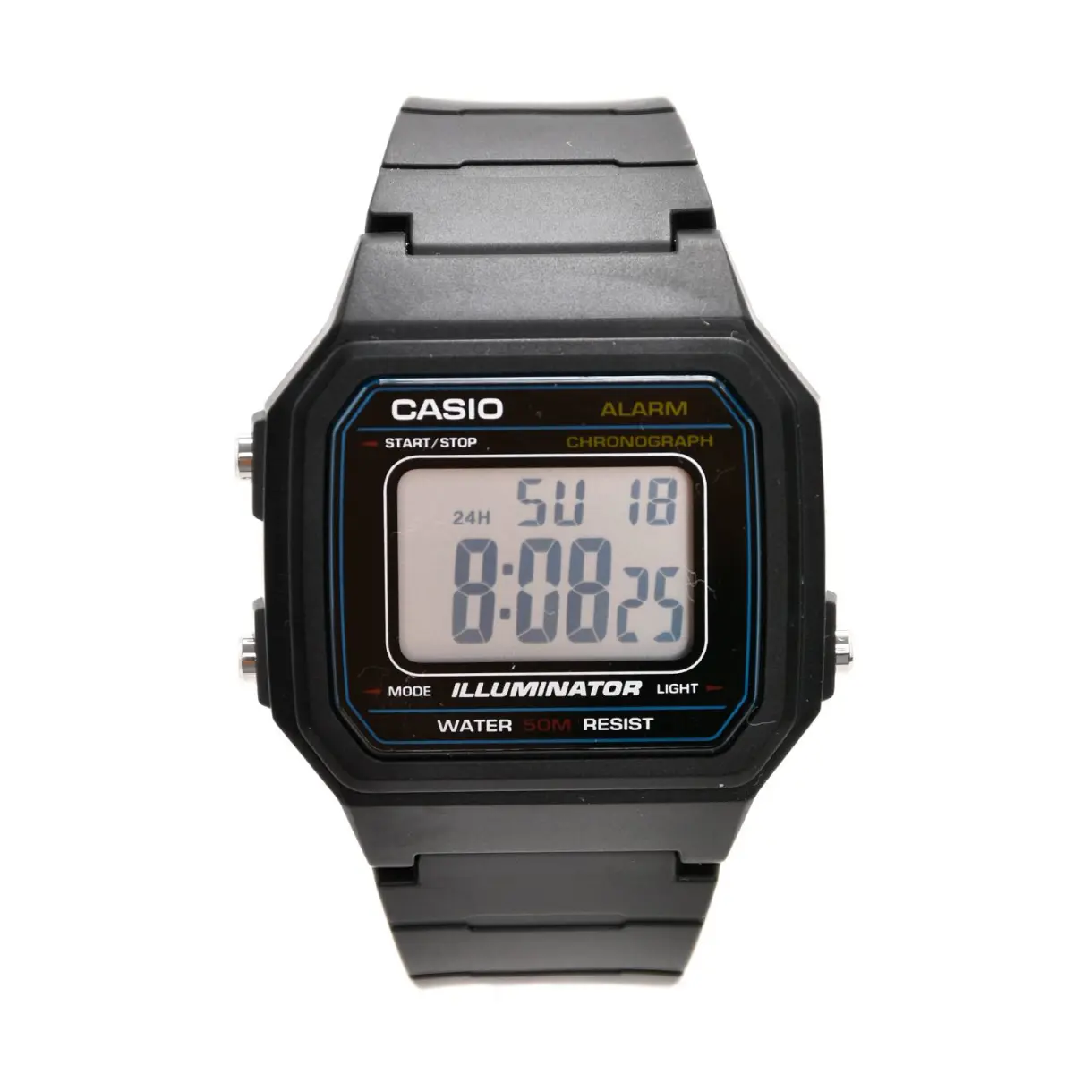 El reloj Casio W-217H-1AVDF destaca por su legibilidad excepcional, gracias a dígitos para la hora de gran tamaño que facilitan la lectura. Equipado con una luz de fondo LED, garantiza visibilidad incluso en condiciones de poca luz. Su resistencia al agua de hasta 50 metros lo hace adecuado para diversas actividades acuáticas, mientras que su cronómetro preciso de 1/100 segundos y alarma diaria añaden funcionalidad adicional. Este reloj ofrece una combinación perfecta de practicidad y estilo para tu día a día.